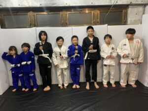 今まで導入していなかったのですが、大人もキッズも明確な目標を持った方が楽しく柔術を続けられると思い、ストライプ制度を導入しました!